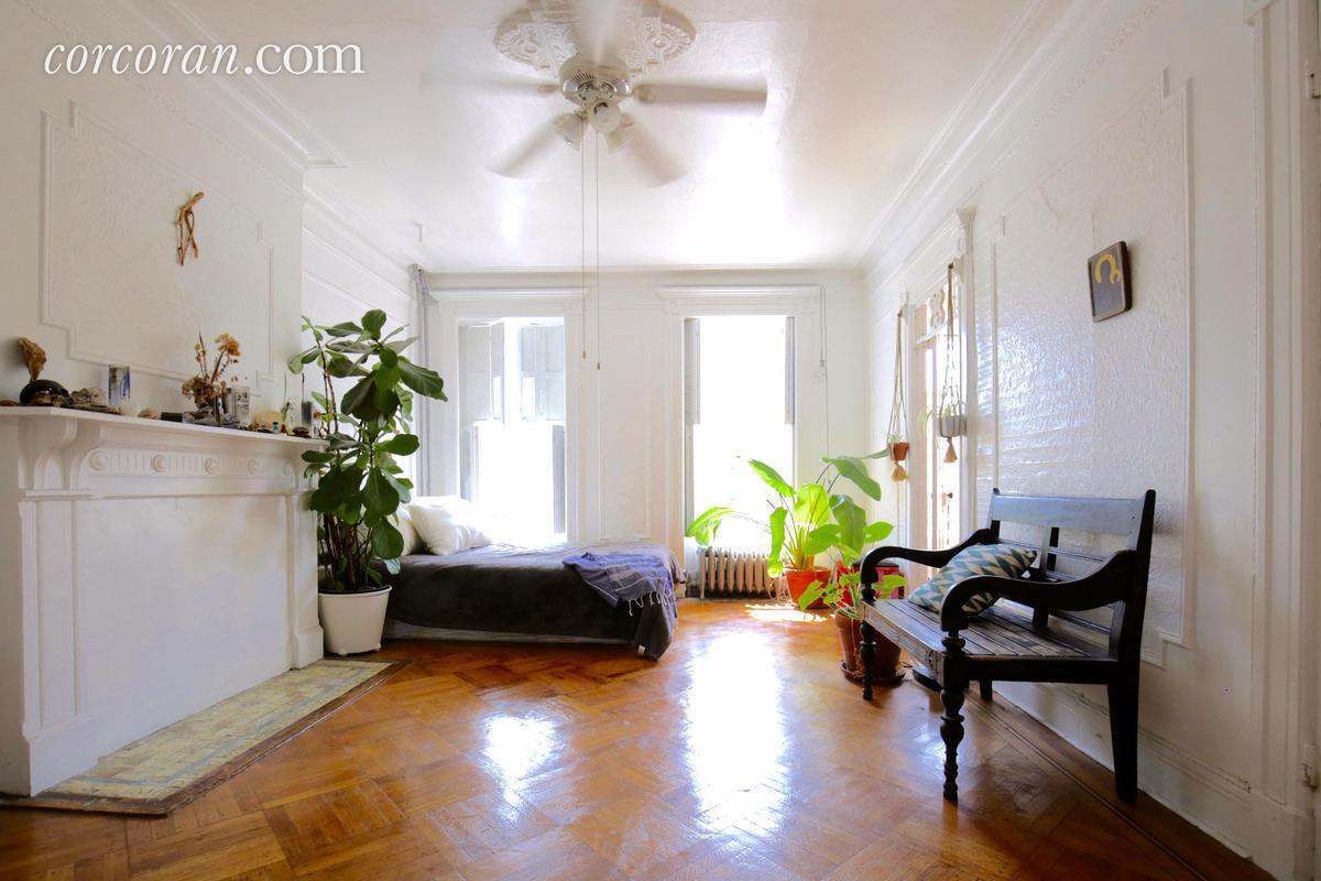 A condo full of Shaker woodwork detail in Brooklyn’s Bed-Stuy neighborhood has hit the market for $799,000. The two-bedroom, two bath home at 464 Hancock Street boasts 10-foot-high ceilings, a functioning wood stove, and an envy-inducing windowed clawfoot tub. The sunlight-drenched home also features Shaker woodwork peg racks in most of the rooms and along the hallways, making for a unique storage addition.
