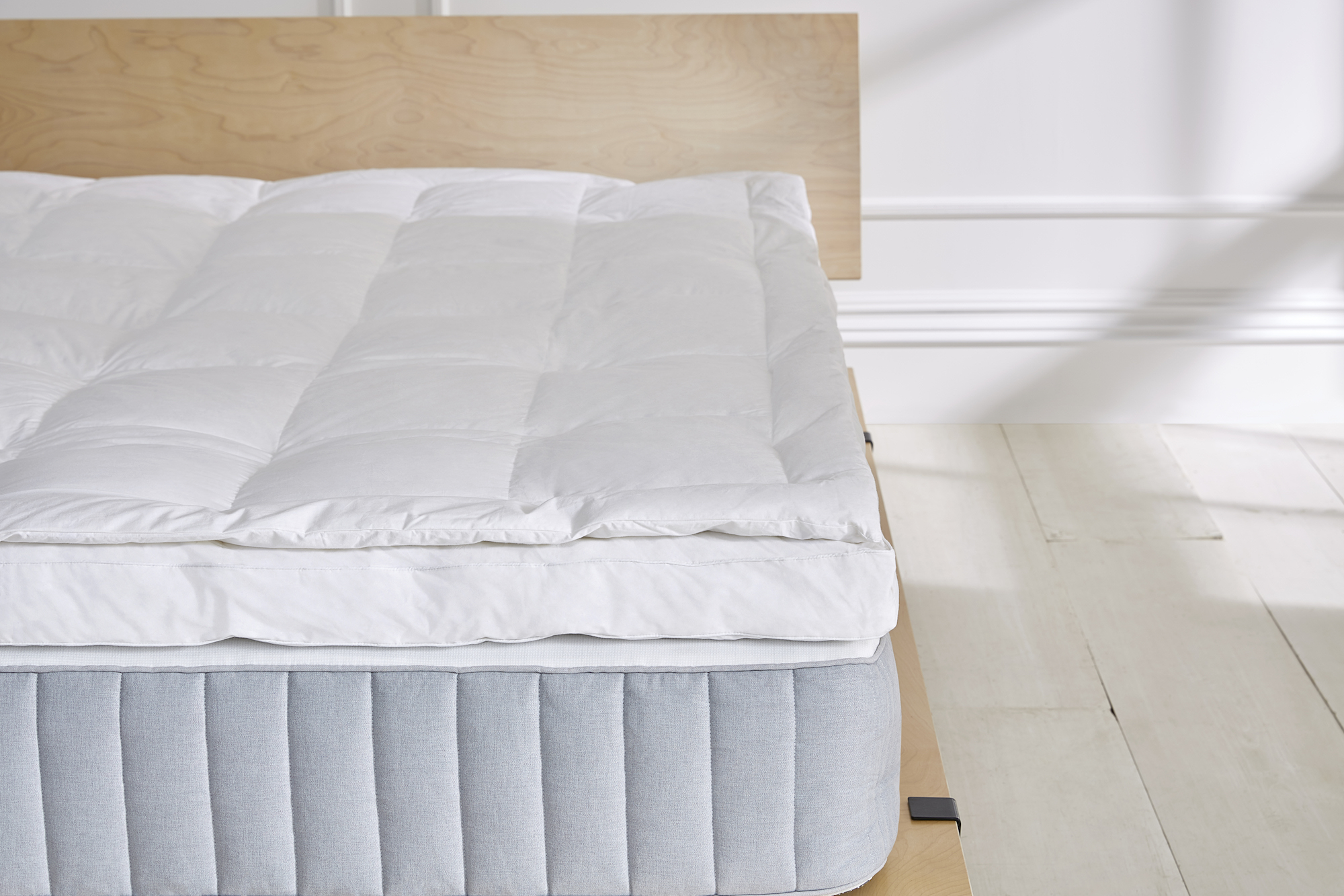 Brooklinen has found the perfect combo of comfort ease, and their down mattress topper is no exception. The white duck down-filled top combined with the white duck feather-filled base creates a cloud-like feel. |