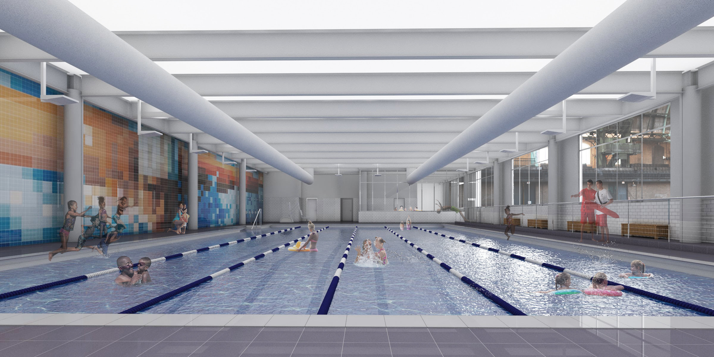 The project will offer a permanent, affordable home to non-profits and other civic organizations including New Heights Youth, Imagine Swimming, Digital Girl, Inc., the Brooklyn Community Pride Center and the Carey Gabay Foundation. There will also be space set aside for use by local schools and Yeshivas who will have access to its facilities. Operators in the Armory will also offer literacy, STEAM, and computer classes for local residents as well as meeting and exhibition spaces. There will also be space for entertainment and arts events, and a café on the premises will be open to the public during events and programming.