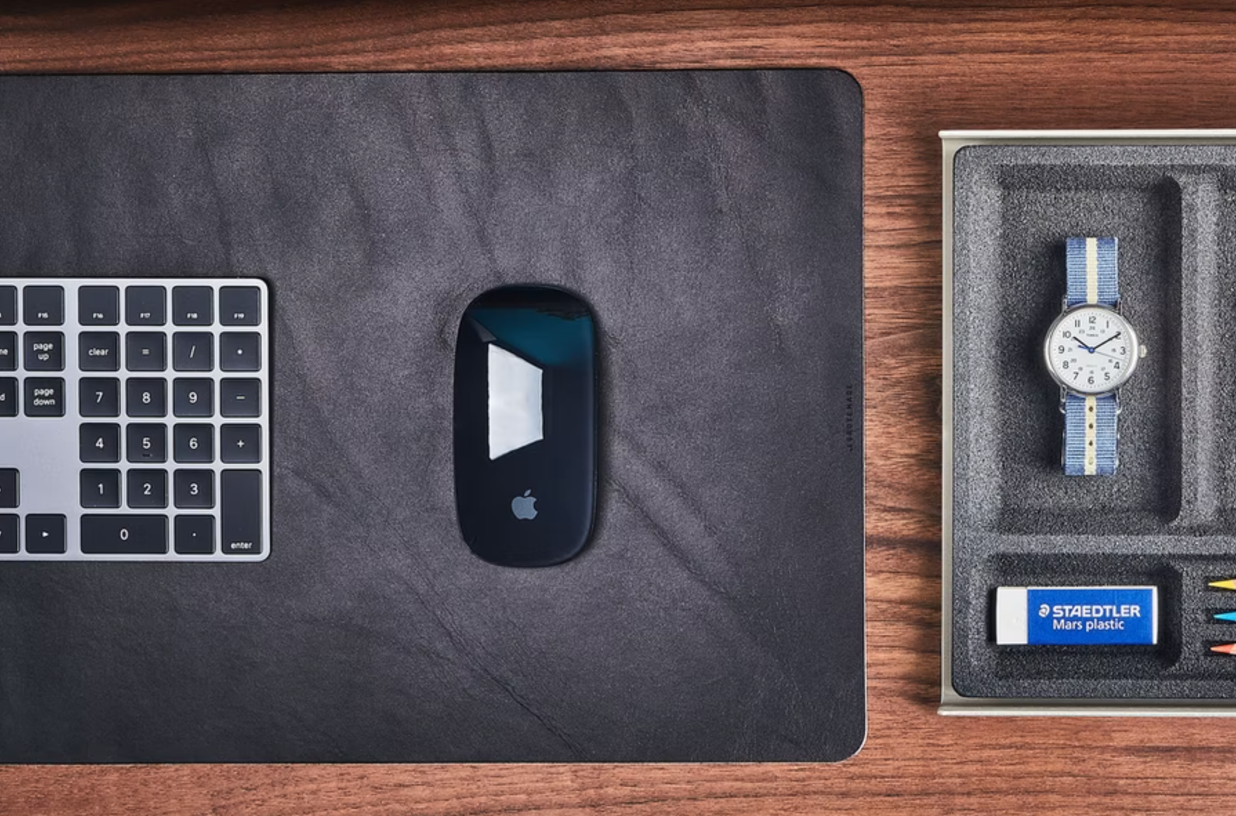 You can help Dad protect his new desk – or breathe new life into his old desk – with this extra-large leather desk pad, which is 49 inches by 26.5 inches. The full-grain leather feels and looks buttery soft, and has a natural cork backing. It’s available in either black or tan leather and also in smaller sizes (small, medium, medium-plus, and large). Another great desk accessory gift idea is a set of black or tan leather coasters, which can keep either hot or cold beverages from leaving water rings on Dad’s desk. Leather Desk Pad- XL, $400, Grovemade |