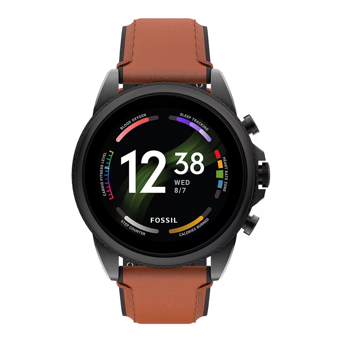 This stylish smartwatch has a brown leather band and also includes a silicone band. The touchscreen watch tracks your heart rate and monitors blood oxygen levels, in addition to monitoring sleep habits. In activity mode, GPS also tracks steps taken and calories burned. The watch, which has Alexa built-in and is compatible with Google Assistant, lets you control music, take and make phone calls, and sync calendars and time zones. The battery lasts 24 hours. Fossil Gen 6 Smartwatch, $299 at Kohl’s |
