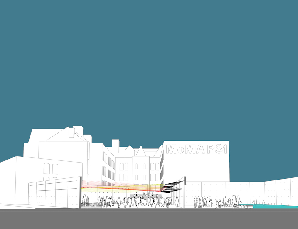 Using the modulation of holes existing in the concrete by the formwork ties from when they were originally poured, the architects will weave a textured canopy suspended over the courtyard, or a “cloud” made of contrasting yet colorful ropes. Klaus Biesenbach, MoMA PS1 Director and MoMA Chief Curator at Large, calls it “an urban beach of sand, water, and vibrant colors.” The materials will be largely unaltered by the construction process, so they can be re-used at the close of summer.