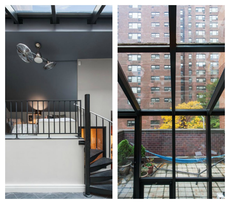 Built in 1985, this 2,100 square-foot, three-story (plus lofts and terraces), three-bedroom townhouse, on the market for $3.45 million, is one of twelve that, along with a 33-story tower, comprise the 290-unit Astor Terrace condominium development. This unique home has a 20th-century-modern smartness–along with a spare, modernist look in dark red-grey brick and black-framed casement windows; a recent and thorough renovation has given it the benefit of contemporary luxury and convenience.