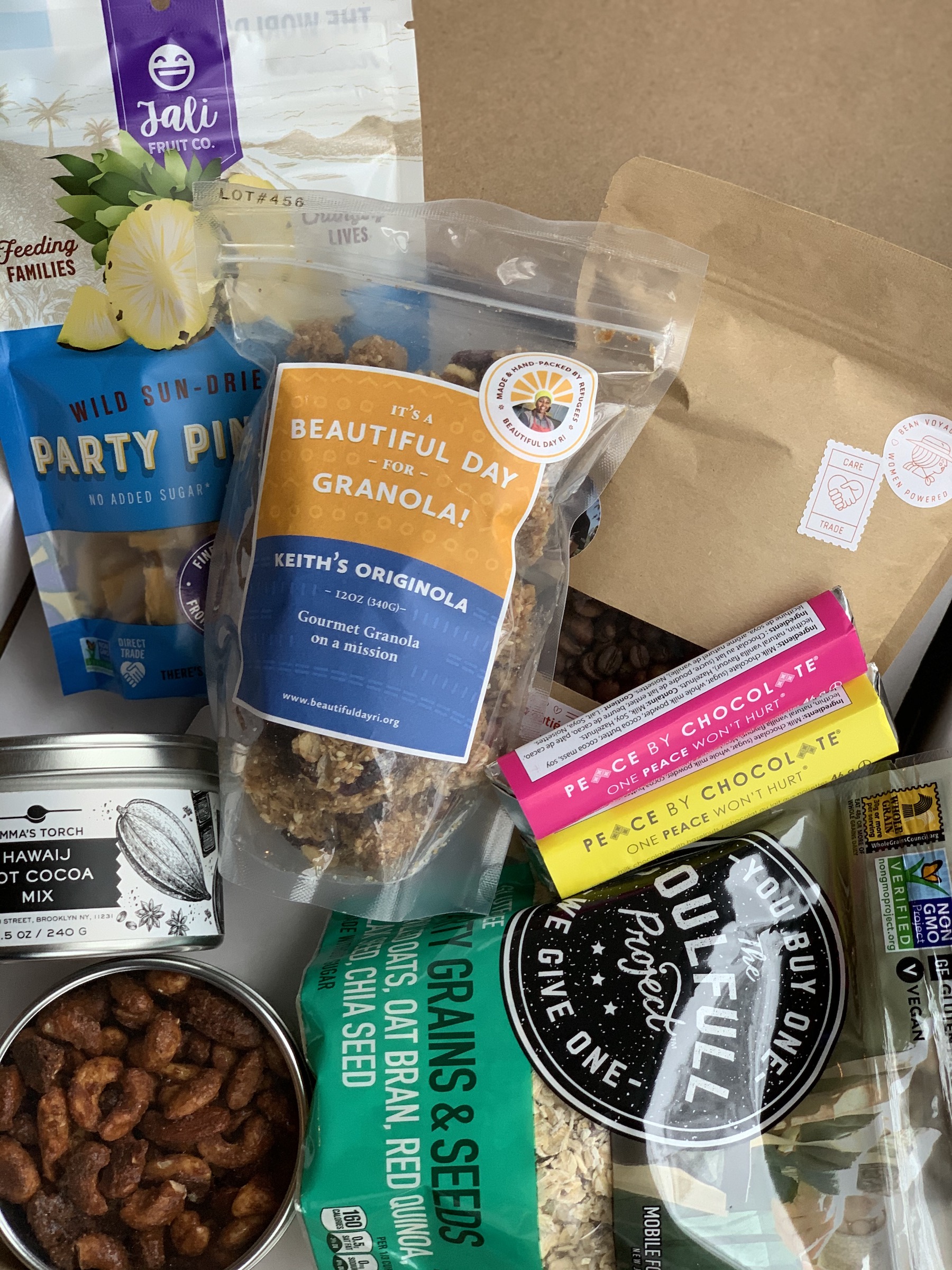 Emma’s Torch Limited Edition Collab Box $65 Carroll Gardens nonprofit-restaurant Emma’s Torch serves as a culinary school for refugees, asylum seekers, and survivors of trafficking. Their Collab Box is made up of products from social enterprises “doing good.” It includes spiced nuts and Hawaij hot chocolate by Emma’s Torch, granola by Beautiful Day, coffee by Bean Voyage, a chocolate bar by Peace by Chocolate, dried fruits by Jali Fruit, hot cereal by SoulFul Project, and a tote bag by Emma’s Torch. Photo courtesy of Emma’s Torch |