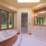 The house has seven full bathrooms, four half baths, and six bedrooms. The master suite boasts double walk-in closets, two separate bathrooms, and a private office.