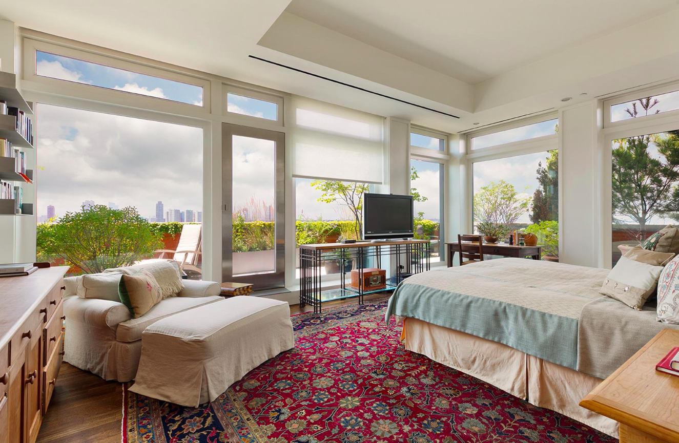 If we had to guess what Meryl Streep’s home looked like, our description would be pretty close to the serene interiors of her Tribeca penthouse, which she’s just listed for $24.6 million. According to Curbed, the three-time Academy Award-winner and her husband, Donald Gummer, bought the four-bedroom apartment in 2006 for $10 million, and they’ve now decided to sell it after buying a mid-century-modern home in Pasadena last December. Though Streep has designed the interiors impeccably, with a laid-back coastal vibe and contemporary art collection, what really sets this residence apart is the 10-foot-wide landscaped terrace that wraps around three sides of the penthouse.