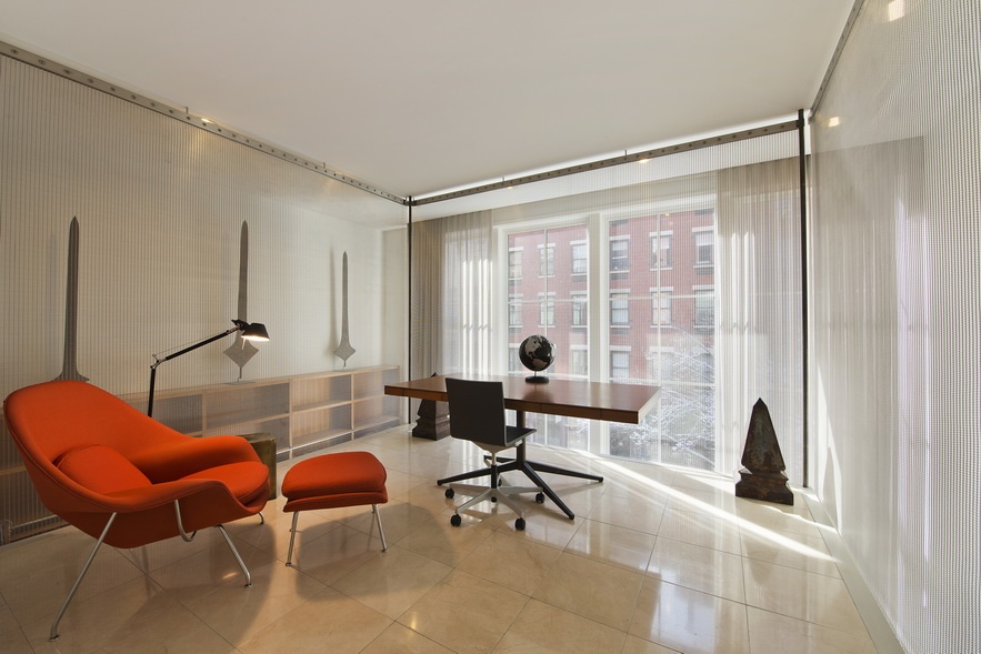 A red-brick townhouse with some legit architect cred behind it has just sold for a very discounted $13.8 million, much lower than its original $18 million ask. The property at at 148 Reade Street was constructed in the 1990s by Guenther Petrarca, and later renovated by famed museum architect Richard Gluckman (his clients include the Whitney and the Gagosian Gallery). The glass and stone mansion boasts 6,800 square feet of space to stretch out in, which includes a media room, a playroom, an elevator, a private garage on the ground floor, and a 500-plus-square-foot duplex terrace with 360-degree views and a waterfall wall. There’s also a pretty cool 23- by 24-foot vault that sits below the sidewalk, a feature that harkens back to site’s 19th century roots when subterranean vaults were the norm.