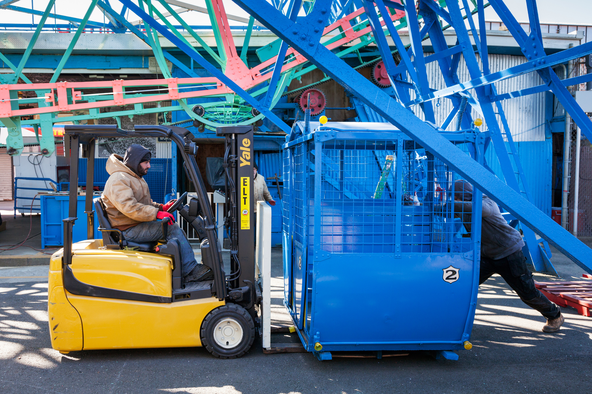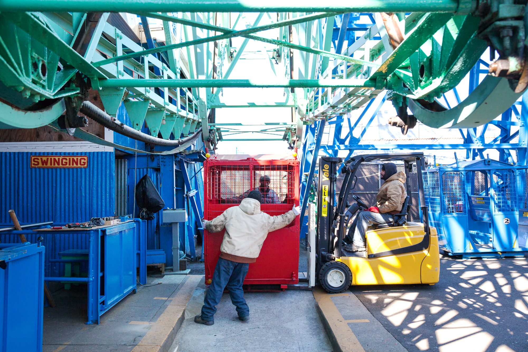 Honoring a 60-year tradition of opening on Palm Sunday, Coney Island Amusement Park will be back in business this Sunday, April 14th. One of the many activities will be the annual blessing of the rides at Deno’s Wonder Wheel. The 150-foot-tall, 100-year-old structure is one of the most iconic pieces remaining at Coney Island. But there’s a lot that goes into this seasonal opening than even the most well-versed New Yorker may not know. Each winter, the 200-ton ride is repainted, and all of its 24 cars are removed. But come spring, second-generation co-owner Steve Vourderis goes through the process of precisely reinstalling and aligning the cars. We were lucky enough to visit Steve and his brother Dennis on a recent frigid Sunday to watch the magic happen.