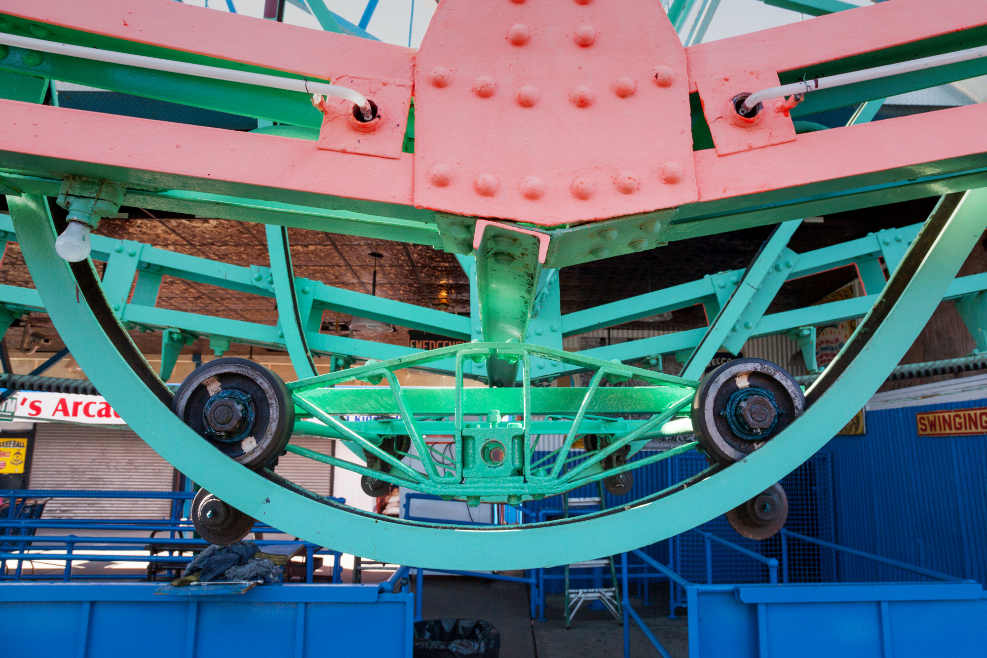 The Wonder Wheel with no cars installed; photos © James and Karla Murray