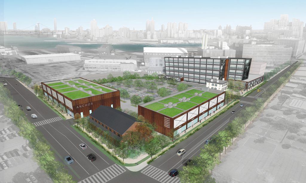 Rendering of Admirals Row via S9 Architecture and 399 Sands Street via Dattner Architects