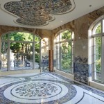 In addition to the outlandish features mentioned previously, the main home boasts several indoor pools, a hair salon, spa treatment rooms, wine vault, ballroom, indoor racquetball court, gym, and saunas and steam rooms. The floors, walls, and ceilings are adorned with gemstones such as onyx, lapis, agate, and malachite.