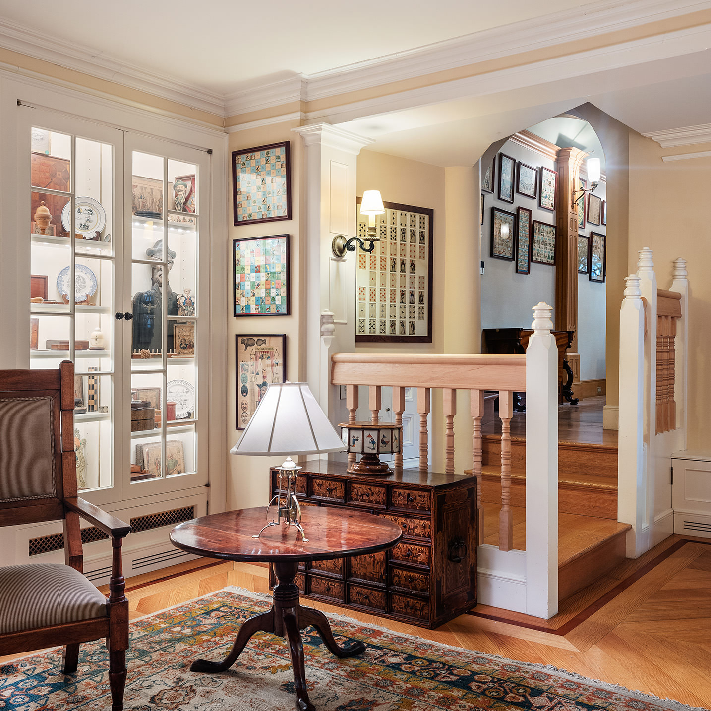 The seven-bedroom townhouse, Sondheim’s Manhattan home until his death in 2021 at 91, is part of a coveted community of 20 townhouses known as Turtle Bay Gardens. Little-known and rarely for sale, the homes encircle a shared private garden. The community has been home to E.B. White, Garson Kanin, Robert Gottlieb, Mary-Kate Olsen, and neighbor Katharine Hepburn, who was once found glaring in at the songwriter from the back door during a 3 a.m. piano session, according to Curbed.