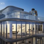 The 6,853-square-foot triplex penthouse atop the 11-story 520 West 28th Street condominium on the High Line, designed by the late Pritzker Prize-winning architect Zaha Hadid, has arrived on the market for the first time for the as-promised ask of $50 million. The architecturally unique 39-unit building, Hadid’s first–and, sadly, only–ground-up structure in New York City, has interiors also overseen and designed by the architect.